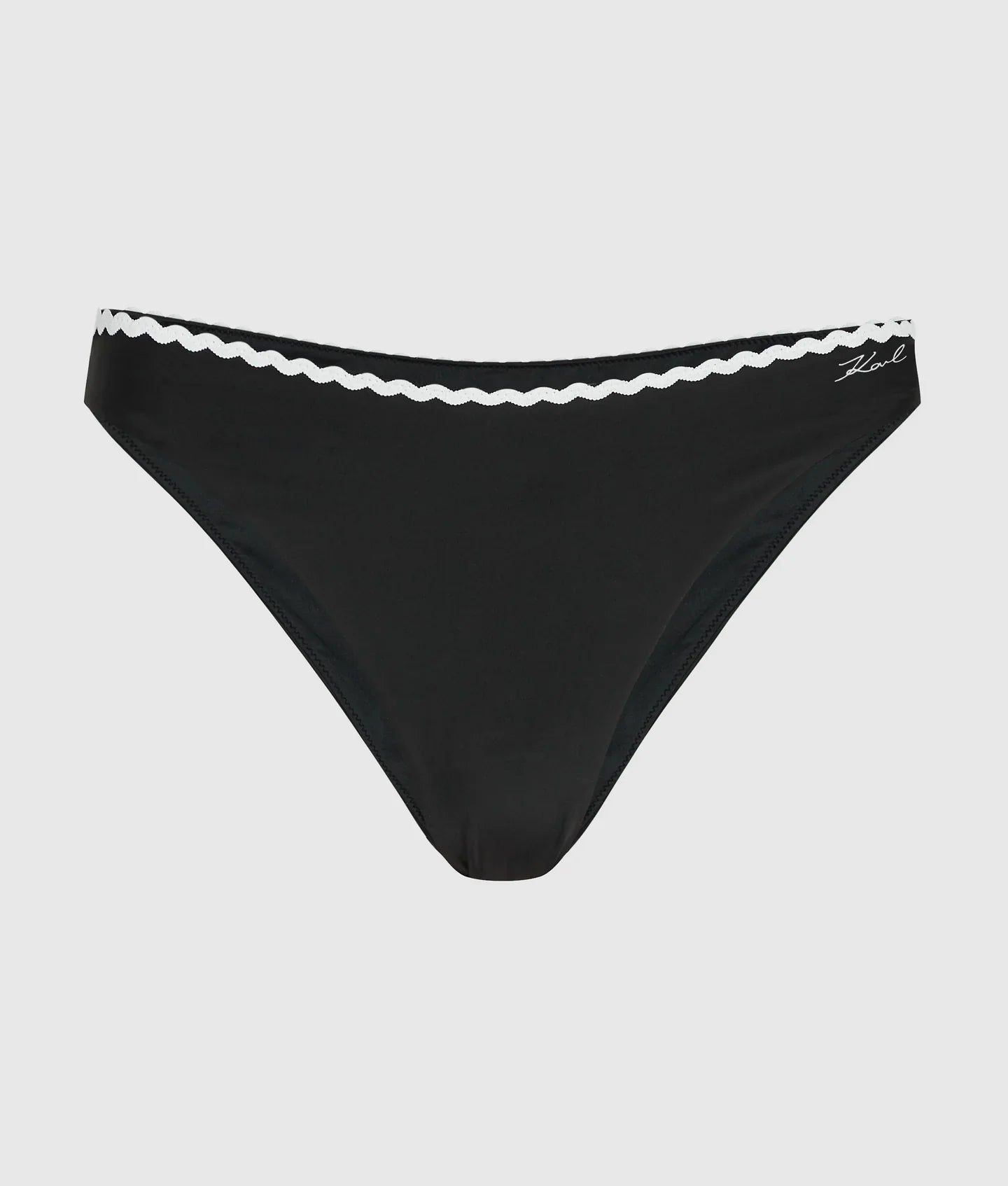 Delicate scalloped edges trace the waistband of these cheeky bikini bottoms. Style yours with the matching bikini top for an elegant poolside ensemble.