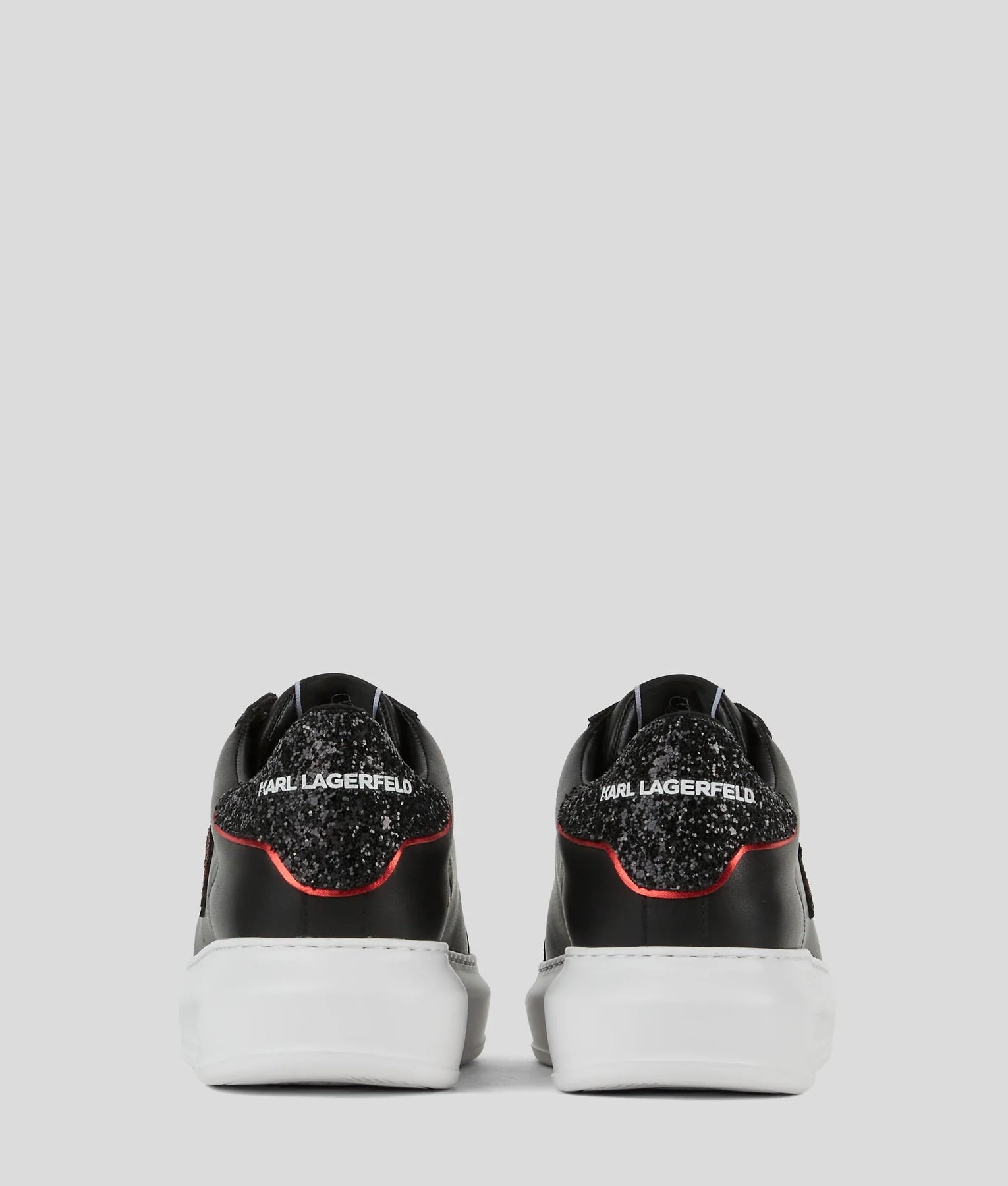 A playful rhinestone heart motif brings romantic charm to these sporty sneakers. The classic lace-up design features shiny metal eyelets and a glittery heel counter adorned with the KARL LAGERFELD logo, while the soft textile lining ensures comfort with every step.