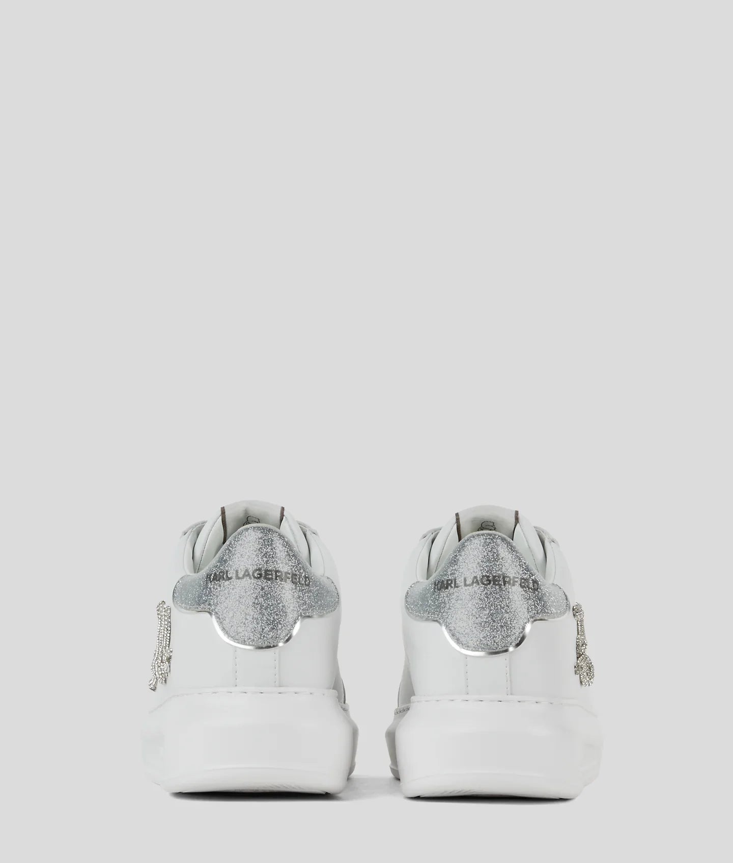 A playful twist on classic style, these sneakers feature glittering laces and a shimmering heel counter adorned with the KARL LAGERFELD logo. The crystal-embellished KARL Signature artwork further enhances their appeal, while the soft textile lining ensures all-day comfort.