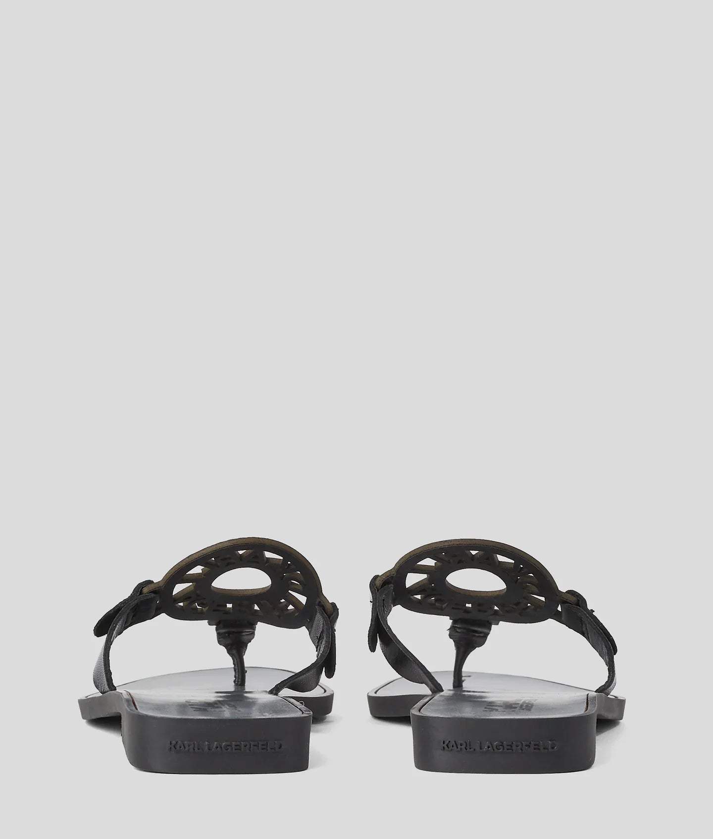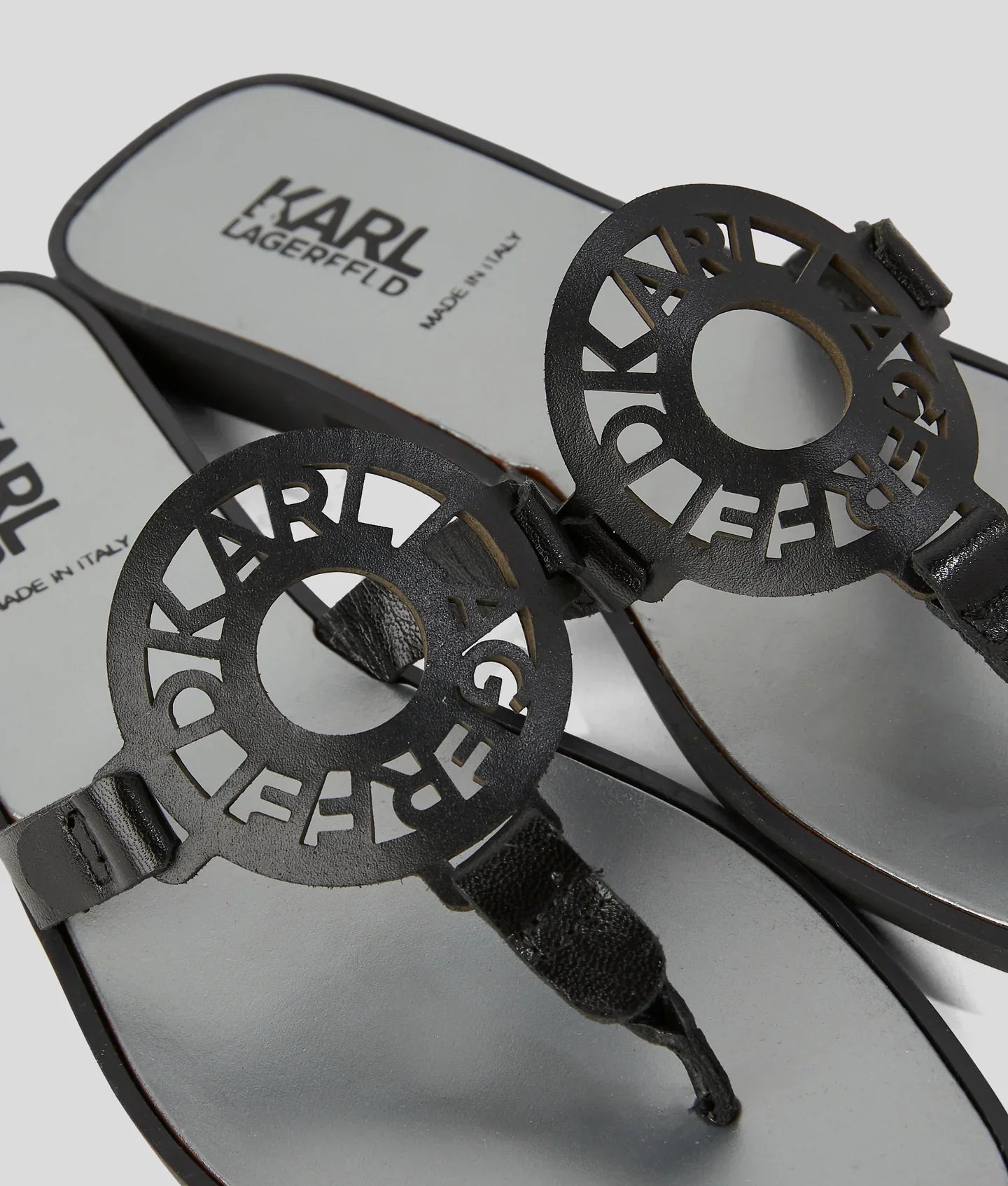 Vachetta leather ensconces your feet in luxury, while the slip-on style ensures easy elegance. KARL's iconic logo adorns an artful circle strap and footbed, exuding sophistication with each step.